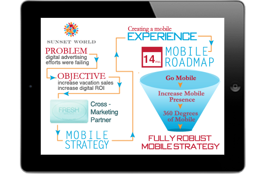 Fresh Digital Group consulted with Sunset World to identify their ideal customers and put together a three-phase mobile strategy. Phase one was optimizing their current online offerings for mobile devices. In phase two we recommended rich media advertising and creating a mobile app and phase three was expansion to social/media integration and monetization.